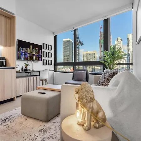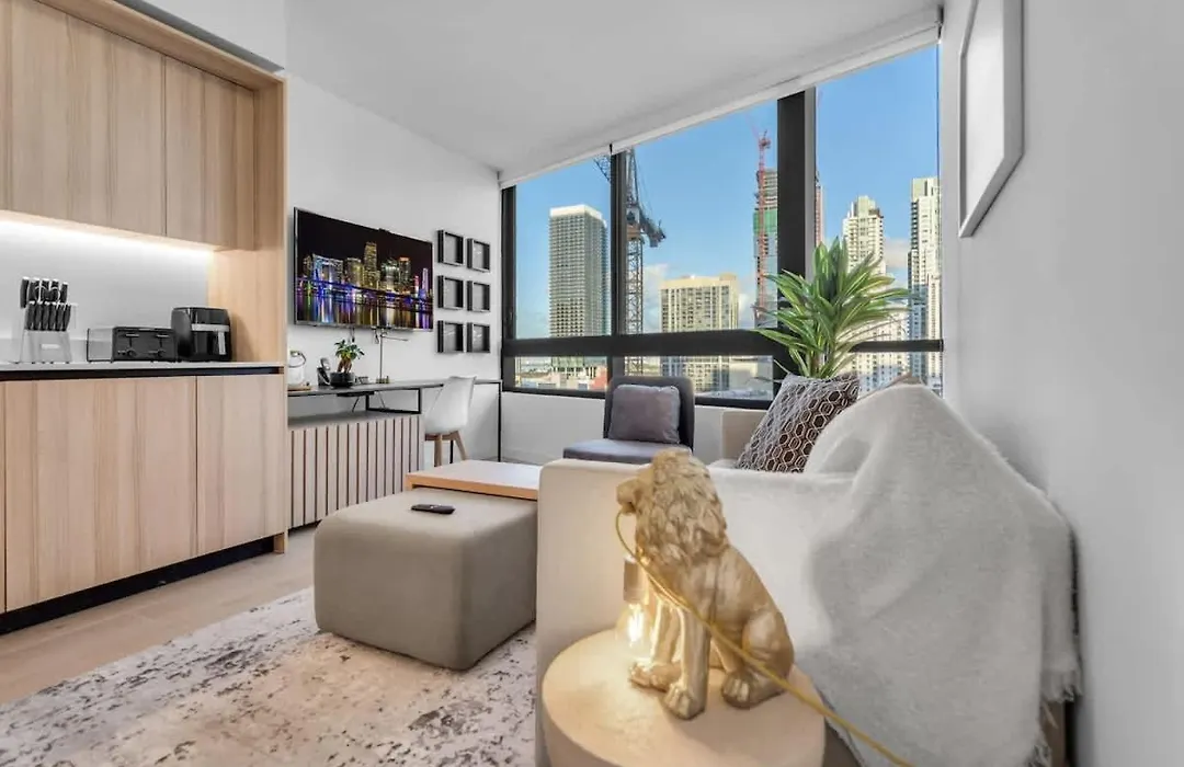 Dit appartement heeft een centrale ligging op slechts 800 meter van metrostation Government Center en binnen 400 meter van Gerechtsgebouw Miami-Dade County. De Miami Design District ligt binnen 4 km van Free Parking Downtown Condo Resort Amenities en 5 km van de luchthaven Miami Internationaal. De accommodatie is binnen een paar straten van het Bicentennial Park genesteld.